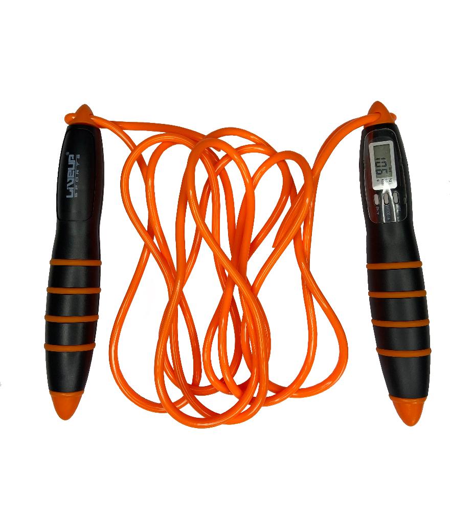 Современная скакалка Live Up LS3128 с электронным счетчиком прыжков. Такой практичный, простой и компактный кардиотренажер знаком многим с самого детства. Это отличный вариант для тренировок дома, в спортзале или на уличных площадках. Скакалка с неопреновыми ручками довольно популярна в подготовке к соревнованиям у боксеров, а также в такой дисциплине как кроссфит. Аксессуар не занимает много места в сумке, поэтому взять скакалку можно с собой в командировку или на отдых. Регулярные тренировки на скакалке с счетчиком прыжков помогут быстро добиться желаемого результата и привести мышцы в тонус. Скакалка спортивная выполнена из ПВХ и ABS пластика и имеет универсальную длину в 275 см. Удобные нескользящие рукояти из неопрена надежно сидят в руке даже во время самых интенсивных упражнениях. Они впитывают влагу, сохраняя кожу сухой. Благодаря встроенному счетчику, вы сможете узнать точное количество прыжков, проведенных за тренировку.Особенности и преимущества: