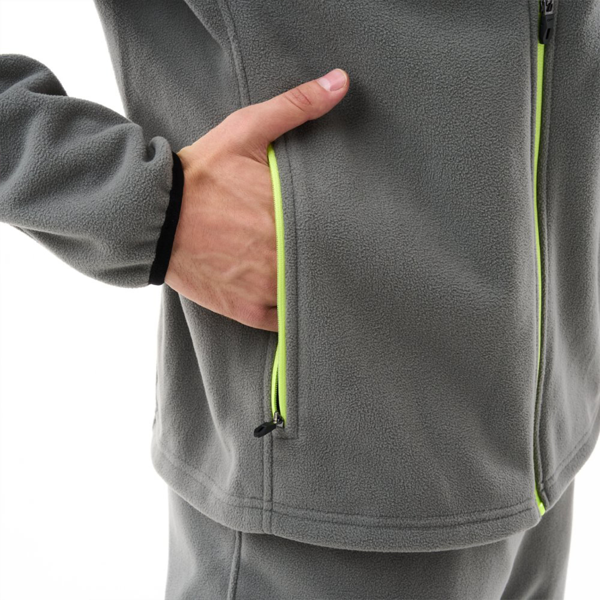 Флисовая кофта на молнии – универсальный и практичный элемент в спортивном гардеробе мужчины. Может использоваться в разных сферах жизни: подходит для повседневной носки, активного отдыха и занятий спортом. Как самостоятельное изделие с успехом заменит толстовку, свитер, худи, свитшот и лонгслив. Идеальный вариант «второго слоя» в дополнение к «первому слою» (термобелью). Сделана из высококачественного флиса с микропористой структурой (состав: 100% полиэстер, плотность ткани: 300 г/м²). Материал обеспечивает превосходную теплоизоляцию, сохраняя тепло тела. При этом ткань обладаетхорошей воздухопроницаемостью и паропропускаемостью: отводит влагу от тела и термобелья, позволяя коже дышать.Кофта на флисе плотная, но мягкая, не сковывает движений, быстро сохнет и имеет небольшой вес. Воротник-стойка укрывает шею от холода; собачка замка защищена планкой от соприкосновения с кожей. Лаконичный дизайн мужской флисовой кофты не лишен практичных элементов: есть удобные карманы на молнии для рук.